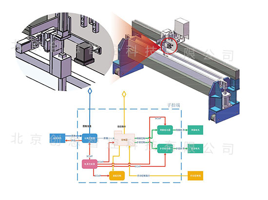 環(huán)縫自動跟蹤焊接系統(tǒng),采用激光焊縫跟蹤器,實時檢測焊縫偏差??刂齐妱踊_,實現(xiàn)Z軸自動跟蹤,保證焊接弧長穩(wěn)定,X軸自動跟蹤,保證焊道對焊縫的對準。